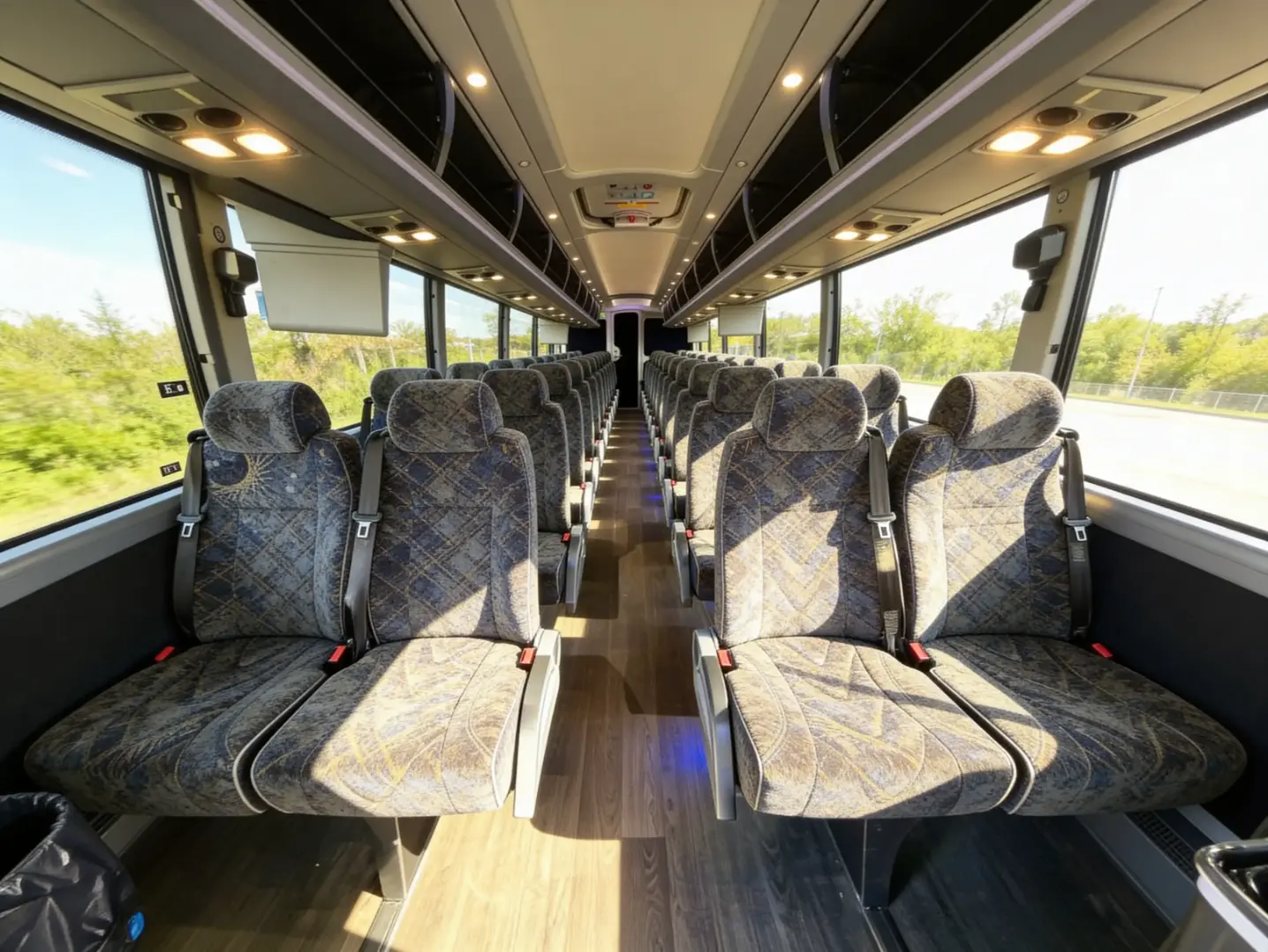We make group travel feel effortless with comfortable, modern features that keep everyone connected and on schedule. You can enjoy reclining seats, individual climate controls, WiFi, power outlets, and flat-screen TVs on your bus. Plus, you'll have an onboard restroom to cut down on unscheduled stops, a PA system for announcements, and ADA-accessible options with ramps and widened aisles to ensure everyone travels comfortably.